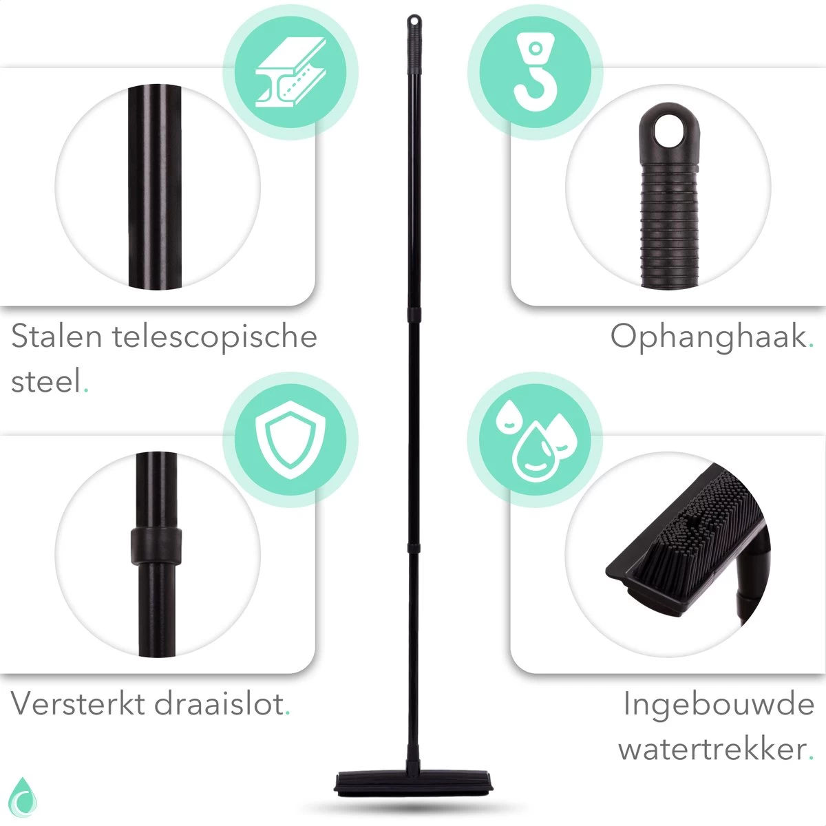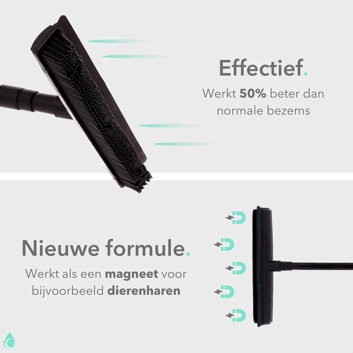 Wist je dat jouw rubberen bezem tot wel 50% effectiever is dan standaard bezems? Met een magnetische formule en extra lange steel werk jij je binnen enkele minuten door je huis heen.
