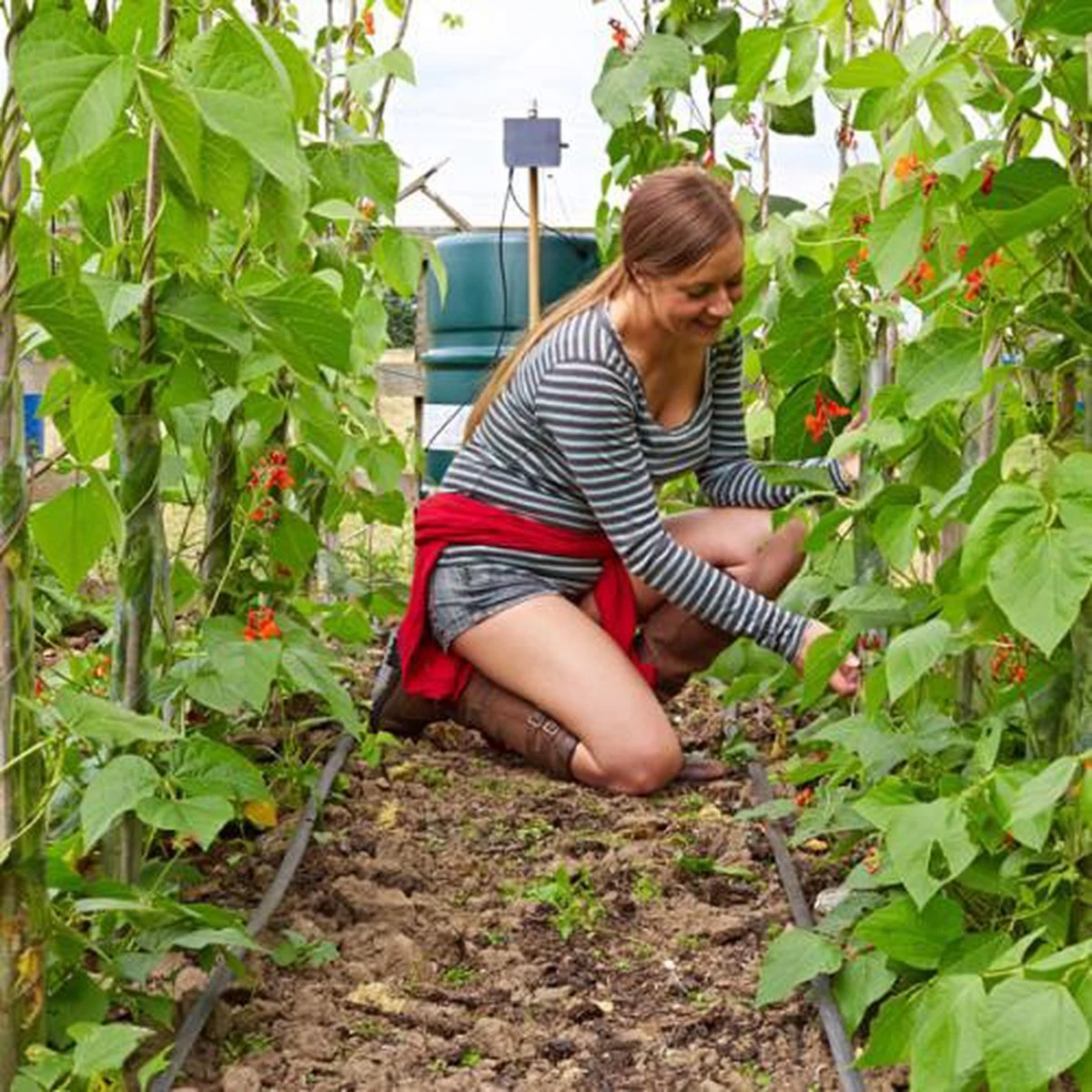 in een regen vat zetten – of in een verhoogd reservoir van waarin regenwater verzameld wordt. De pomp werkt als het onderstuk in meer dan 5cm water staat