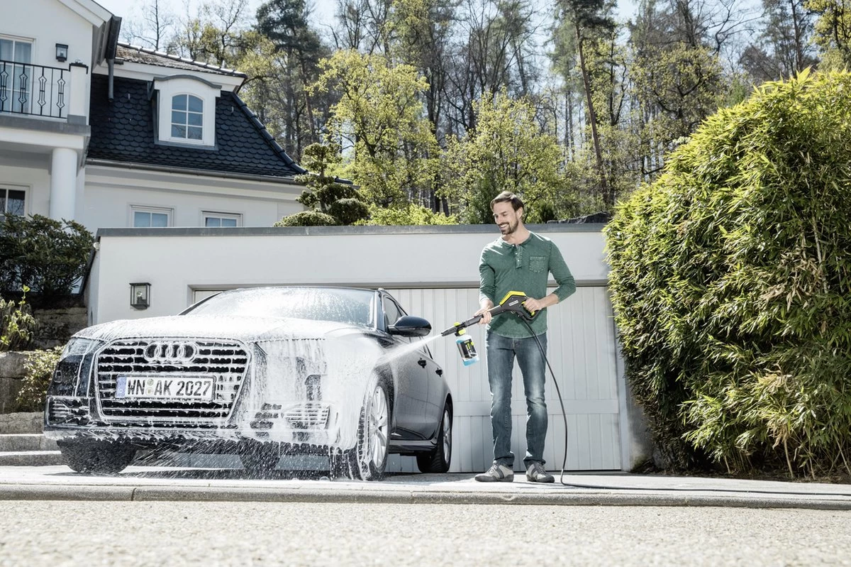 - Toepassing: voor de reiniging van tuin-, terras-, balkonmeubilair, hekken en kleine tuinpaadjes of tuintegels, motoren en scooters, kleine auto’s, buitentrappen en grotere tuinpaden, middelgrote auto’s en stationcars, tuinmuurtjes en stenen muurtjes, campers en SUV’s
