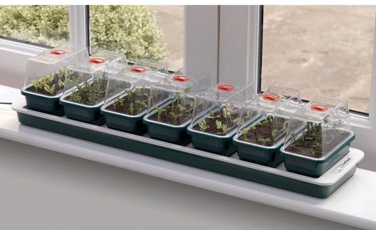 U bekijkt een verwarmde kweekbak van Garland, ook wel heated propagator genoemd. Deze producten zijn met veel zorg gemaakt in Engeland. Met behulp van deze kweekbak kunt u uit zaad of met een gedeelte van een wortel van een bestaande plant, nieuwe planten kweken. Deze kweekbak heeft een stevige plastic onderbak met ingebouwd warmte-element inclusief 7 kleine kweekbakjes. Bijzonder mooie afwerking, prima kwaliteit. De maatvoering is lengte 76cm x breedte 19cm x hoogte 15cm. Deze kweekbak heeft geen thermostaat. Het stroomverbruik is 13 watt. Dit zorgt ervoor dat de temperatuur in de kweekbak met circa 8 graden celcius wordt verhoogd. Indien de temperatuur te hoog wordt kunt u wat zilverzand op de onderplaat strooien en hier de kweekbakjes op plaatsen. Handig vensterbank formaat.