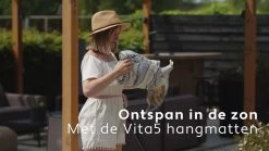 Vita5 Hangmat Met Standaard – 2 Persoons – Incl. Bekerhouder – 205kg Draaggewicht – Blauw/Wit/Bruin