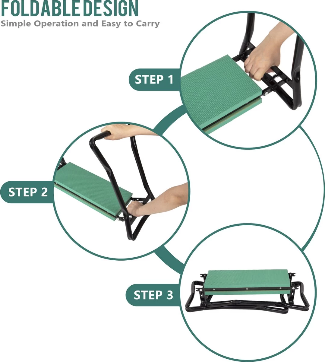 Draai deze knieler om voor de tuin rond, en je krijgt een… *drumroll alstublieft*… een stoel! Gemaakt met stevige stalen buizen en EVA, deze zitting duurt tot 330 lbs, zodat het niet afbrokkelt onder druk. Neem een pauze, drink wat limonade – je tuin ziet er absoluut prachtig uit.
