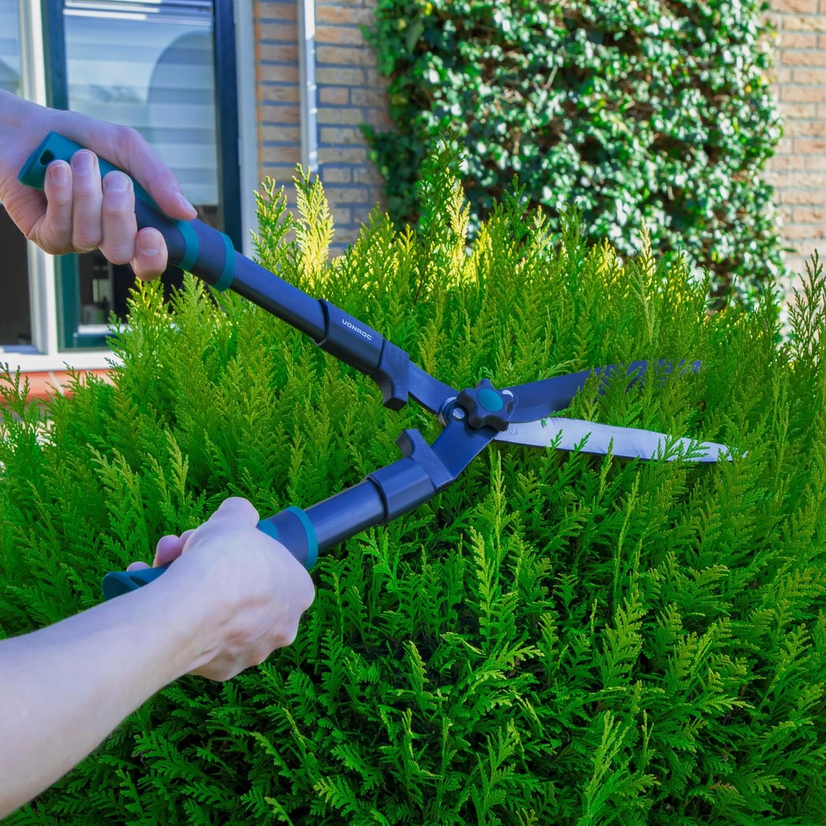 - Heggenschaar: 57cm lang met 22,9cm golvende bladen, geschikt voor het knippen van een heg, heester of struik met een maximale tak diameter van Ø 6mm. De golvende bladen houden het te snijden materiaal in het snijgebied en voorkomt dat het wegglijdt. De snijbladen zorgen voor nauwkeurige en zuivere sneden en dat maakt de heggenschaar geschikt voor het snijden van vers hout.